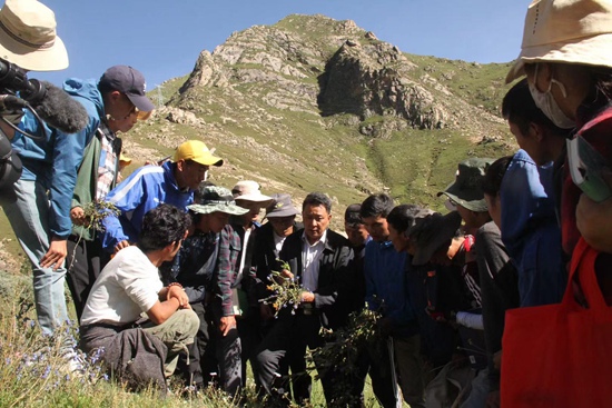 學(xué)校副校長(zhǎng)米瑪帶領(lǐng)學(xué)生在野外開展采藥認(rèn)藥實(shí)踐教學(xué)