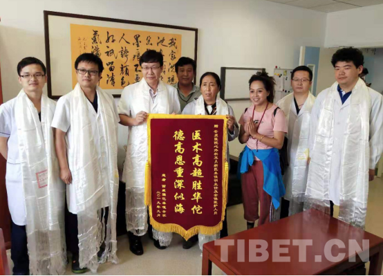 30日,即將出院的強(qiáng)巴卓嘎把一面書寫“醫(yī)術(shù)高超勝華佗,德高恩重深似?!钡腻\旗送到朱俊明手中,她禁不住熱淚長流,連聲說著:“吐基其,吐基其(謝謝)!”