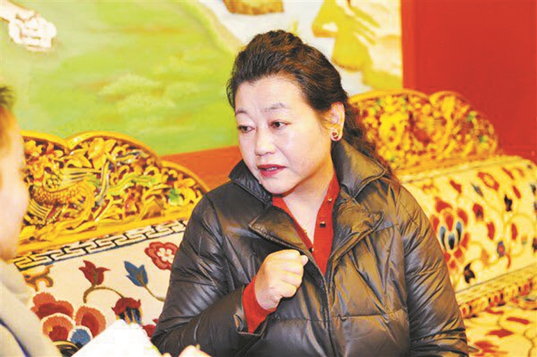 圖為人大代表扎西德吉在接受記者采訪(fǎng)。 記者 孫靖宇攝