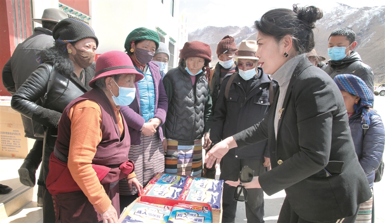 圖為發(fā)放護(hù)理用品現(xiàn)場(chǎng)。拉薩融媒通訊員 嘎 色 攝
