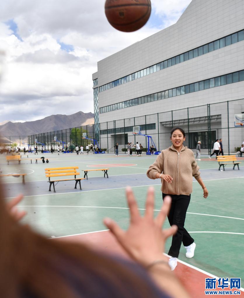 拉增在西藏大學(xué)操場(chǎng)打籃球(5月7日攝)。新華社記者 晉美多吉 攝