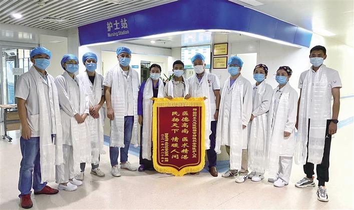 為了表達(dá)謝意,旦增的表哥專(zhuān)門(mén)從西藏購(gòu)買(mǎi)了20條哈達(dá),通過(guò)快遞寄到十堰市。出院那天,他帶著表弟為全科的醫(yī)護(hù)人員獻(xiàn)上潔白的哈達(dá)?!拔液芨兄x給我捐獻(xiàn)腎臟的人,也很感謝醫(yī)護(hù)人員們的關(guān)心照顧?!钡┰稣f(shuō)。