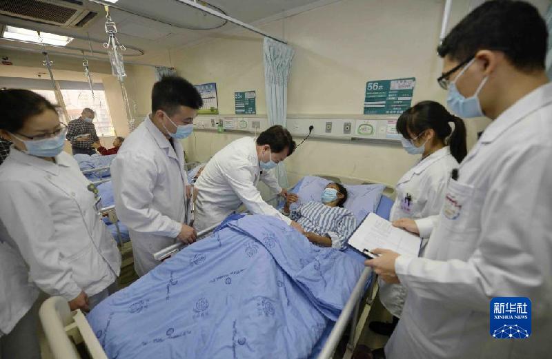 12月3日,在四川大學(xué)華西醫(yī)院,王文濤(中)在病房?jī)?nèi)查看包蟲病患者病情。新華社記者 劉坤 攝