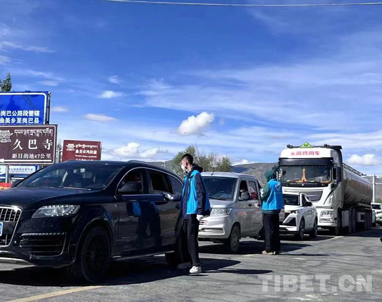 圖為志愿者在西藏自治區(qū)日喀則市開展健康碼查驗等工作