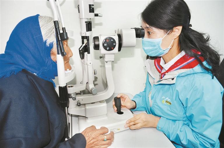 自2016年以來,北京市共選派援藏醫(yī)療隊員97人為西藏拉薩各級醫(yī)院提升軟硬件設(shè)施和診療水平,使廣大患者受益。圖為北京醫(yī)學(xué)專家在拉薩市當(dāng)雄縣開展白內(nèi)障篩查。孫靖宇 攝