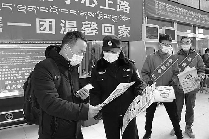 圖為山南市禁毒辦組織工作人員深入客車站、商鋪等地開展春運禁毒宣傳教育活動。王雪 攝