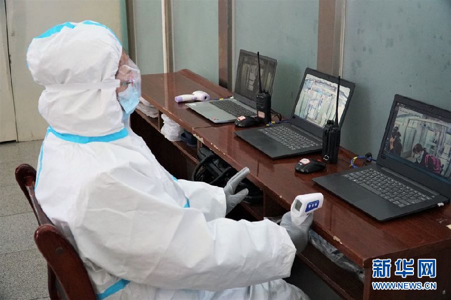 1月28日,西寧火車站工作人員身著防護(hù)服監(jiān)測進(jìn)站旅客體溫情況。新華社記者 嚴(yán)賦憬 攝