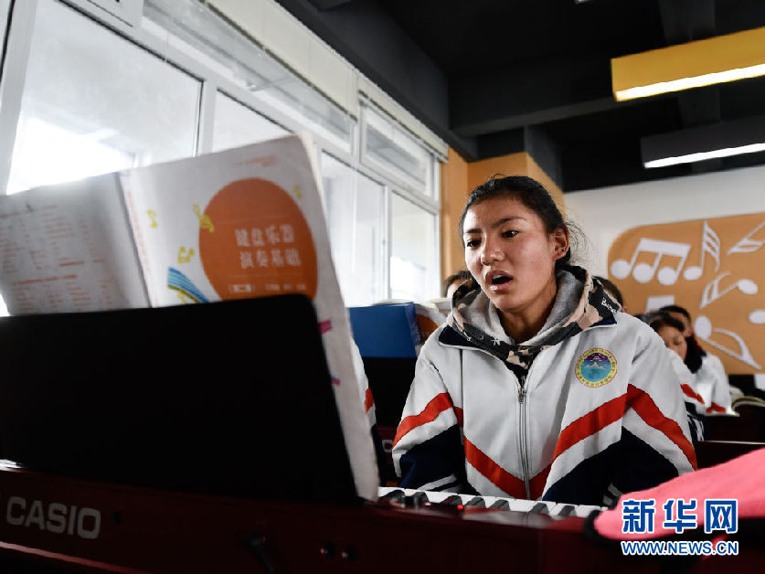 3月16日,在果洛藏族自治州職業(yè)技術學校,2020級學前教育專業(yè)學生楊央在上音樂課。新華社記者 張龍 攝