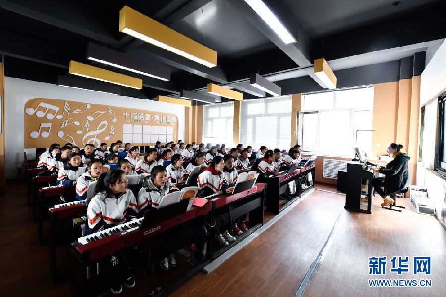3月16日,在果洛藏族自治州職業(yè)技術學校,2020級學前教育專業(yè)學生在上音樂課。新華社記者 張龍 攝