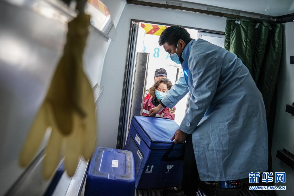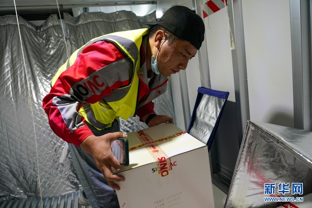 7月22日,在四川甘孜州疾控中心,工作人員將疫苗搬入當(dāng)?shù)氐睦滏溰嚒P氯A社記者 彭子洋 攝