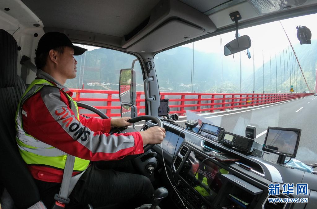 7月22日,司機(jī)劉思駕駛運(yùn)送疫苗的冷鏈車經(jīng)過(guò)大渡河。新華社記者 彭子洋 攝