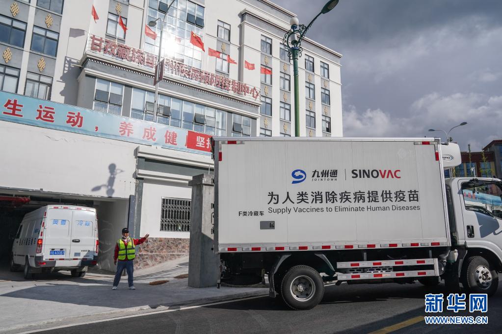 7月22日下午,運(yùn)送疫苗的冷鏈車歷經(jīng)40多個(gè)小時(shí)后到達(dá)四川甘孜藏族自治州疾控中心。新華社記者 彭子洋 攝