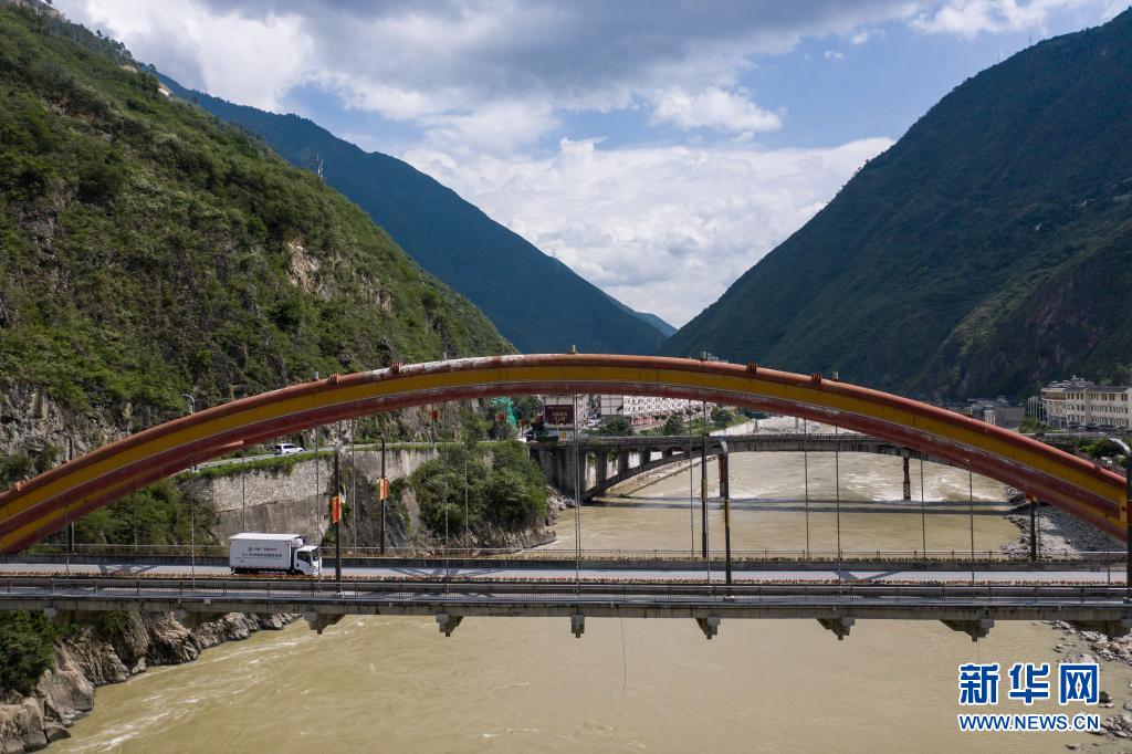 7月22日,從北京一路駛來(lái)的疫苗冷鏈車經(jīng)過(guò)大渡河。新華社記者 彭子洋 攝