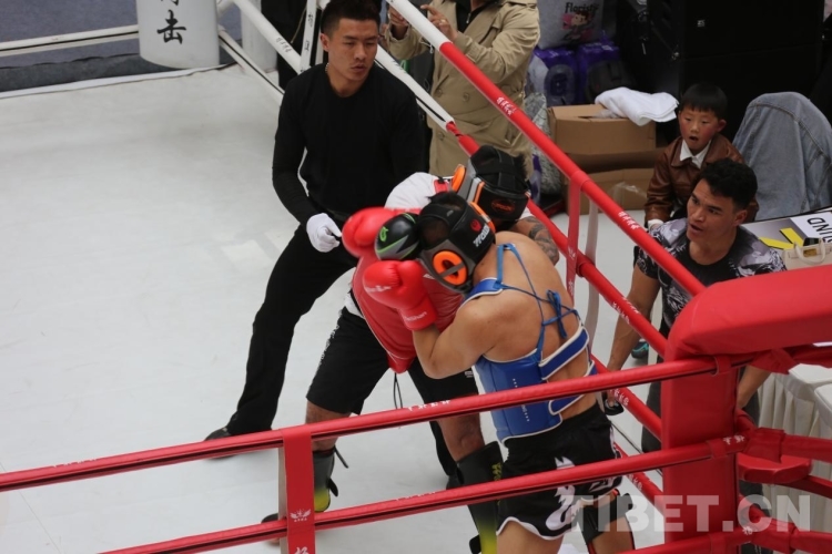 中國(guó)西藏網(wǎng)訊 4月15日,2023年西藏自治區(qū)全民健身系列活動(dòng)(自由搏擊)在拉薩市舉行。擂臺(tái)上紅藍(lán)雙方使出各自“武學(xué)”本領(lǐng),激情比賽。引得擂臺(tái)下觀眾血脈噴張,喝彩聲連綿不斷?! ?/p>