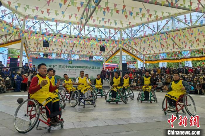 圖為助殘日當(dāng)天,西藏輪椅籃球隊(duì)成員表演節(jié)目《健康西藏動(dòng)起來》。西藏自治區(qū)殘聯(lián)供圖