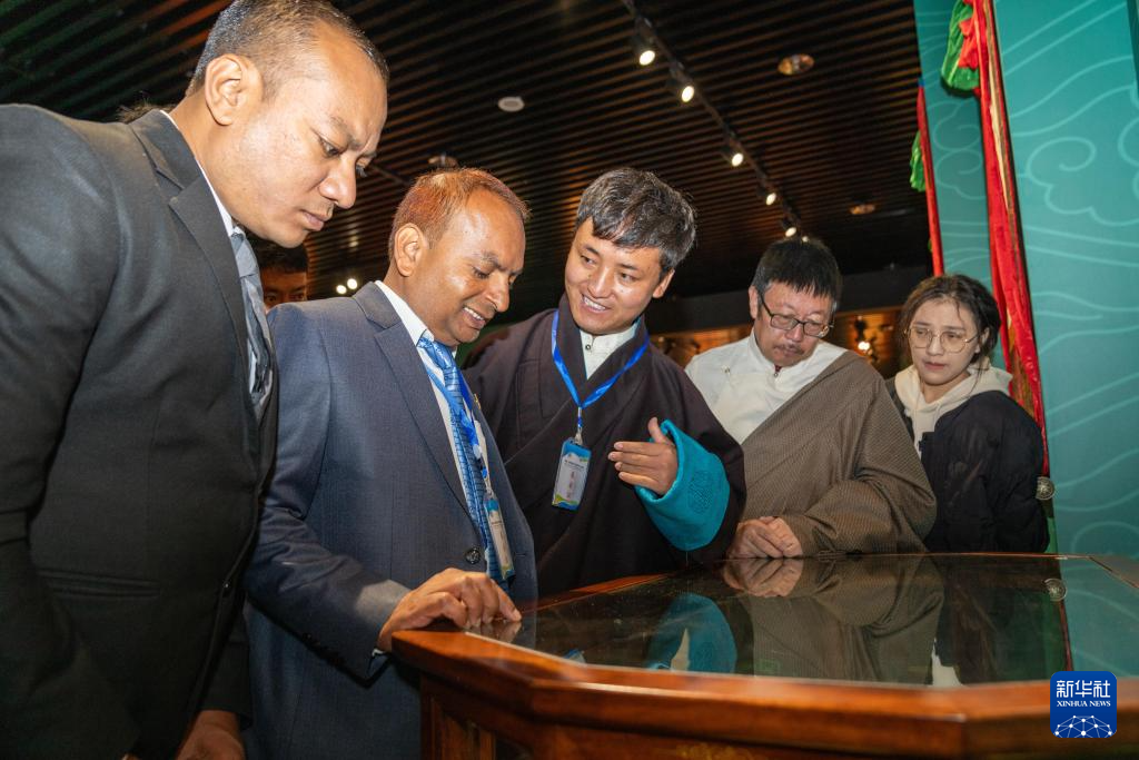 首屆《四部醫(yī)典》國際學(xué)術(shù)交流會參會嘉賓參觀《四部醫(yī)典》專題展覽(10月18日攝)。新華社記者 旦增尼瑪曲珠 攝