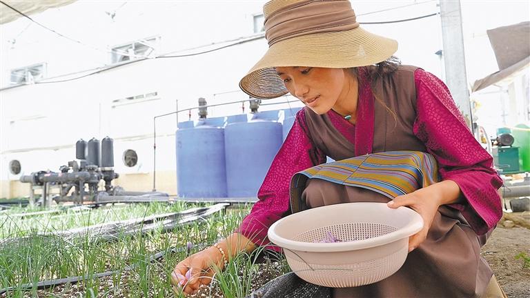 眼下,走進(jìn)位于薩迦縣扯休鄉(xiāng)的藏紅花種植基地,一朵朵紫色小花內(nèi)生長著紅色的花絲,色澤鮮亮、香氣濃郁。據(jù)悉,在上海援藏干部與上海醫(yī)藥旗下的上海市藥材有限公司支持下,“匯愛薩迦·藏紅花種植項目”于2023年在薩迦縣扯休鄉(xiāng)落成?;亟衲甑漠a(chǎn)量在去年的基礎(chǔ)上增加了20%到30%,產(chǎn)品的品質(zhì)、花絲的長度以及所含的有效成分都非常理想。隨著這些“紅色寶藏”迎來一次又一次的豐收,將帶動更多當(dāng)?shù)厝罕妼崿F(xiàn)就業(yè)增收。