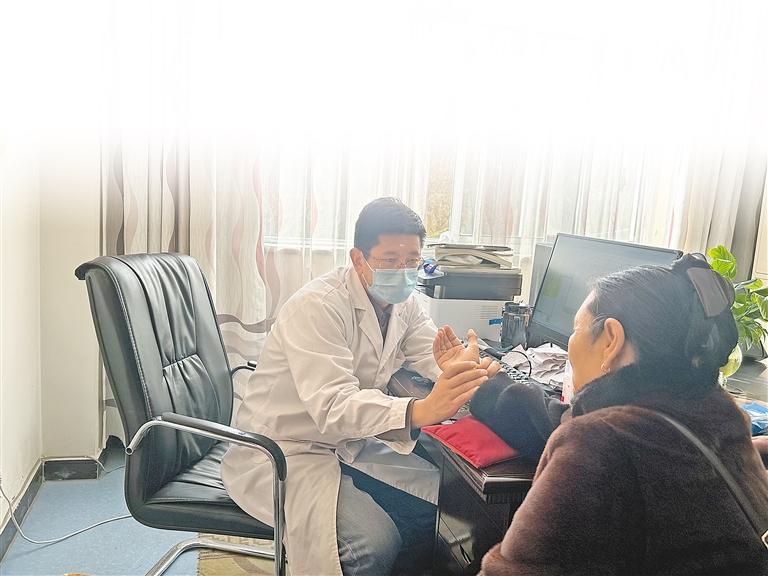 圖為桑珠群培(左)為患者號脈。