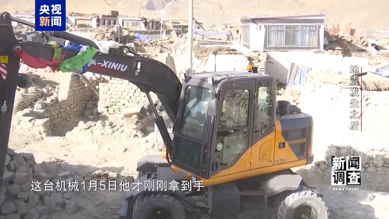 總臺(tái)央視記者 張騰飛:與此同時(shí),在現(xiàn)場(chǎng)我們還看到有大型的機(jī)械正在對(duì)村里道路進(jìn)行清障。這臺(tái)機(jī)械其實(shí)是達(dá)瓦次仁大哥自己的機(jī)械,這臺(tái)機(jī)械1月5日他才剛剛拿到手,花了30多萬(wàn),所以非常新。1月7日他聽(tīng)說(shuō)地震消息之后,他家住在拉孜縣,聽(tīng)說(shuō)震中非常嚴(yán)重,二話沒(méi)說(shuō)就開(kāi)著他家的這個(gè)非常新的機(jī)械就來(lái)到了震區(qū)。這兩三天一直都在震區(qū),哪里需要就到哪里。而且他跟我說(shuō),他的油、吃飯都是自己想辦法解決。作為一個(gè)不是定日縣的人,但他還是希望能夠出一把力。