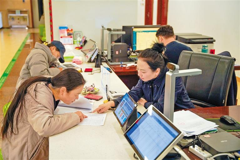 圖為自治區(qū)醫(yī)療保障局工作人員為市民介紹跨省異地就醫(yī)直接結(jié)算業(yè)務(wù)辦理流程。記者 貢曲羅杰 攝