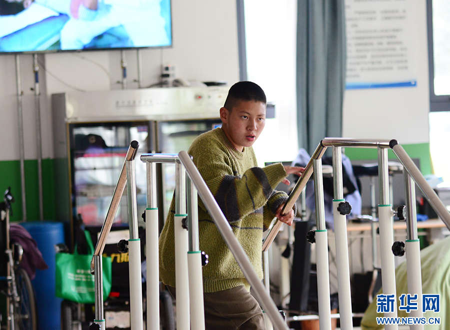 托養(yǎng)人員在進(jìn)行康復(fù)訓(xùn)練(5月16日攝)。新華網(wǎng) 柑丹鴦琦 攝