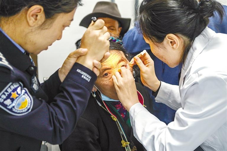 圖為醫(yī)療隊(duì)專家在為群眾檢查眼睛。記者 孫開(kāi)遠(yuǎn) 通訊員 劉戀 龍小鳳 攝
