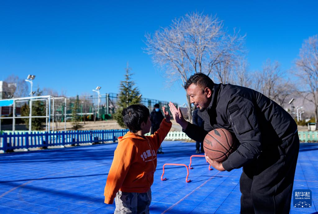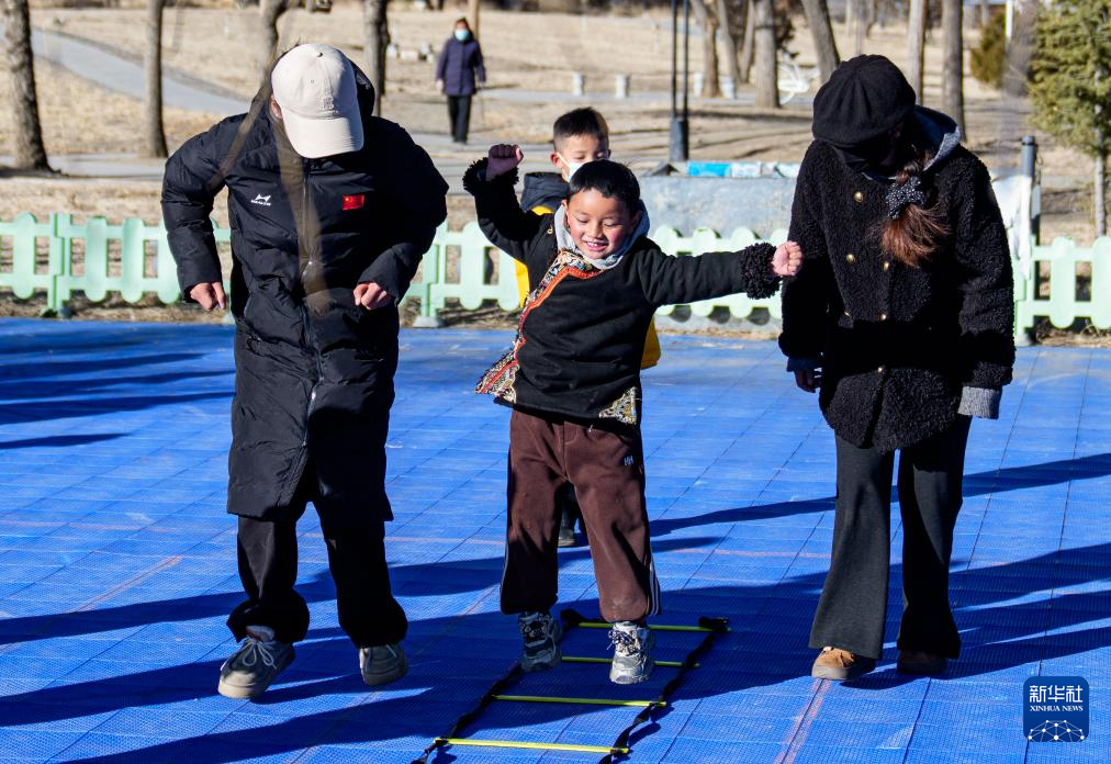 1月22日,在拉薩市全民健身體彩公園內(nèi),殘障兒童在家長陪同下參加“陽光殘障兒童公益興趣班”體適能訓(xùn)練課程。新華社記者 丁增尼達(dá) 攝
