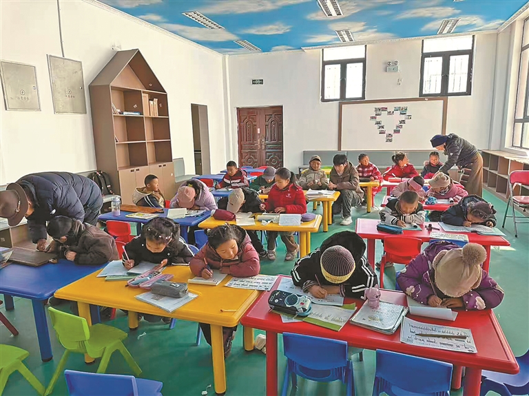 孩子們在公益輔導課堂上專注學習。拉巴桑姆 攝
