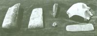 卡若遺址面積約10000平方米,出土大型石器近7000件,有鏟、斧、鋤、犁和切割器、刮削器、砍砸器等工具;骨器400多件,有骨錐、骨針等;陶片20000多件,陶色有紅、黃、灰、黑四種,有陶罐、陶缽、陶盆等。另外,卡若遺址還出土了豬、羚羊、狍子等十幾種動物的骨骼,以及大量的粟類谷物,還有房屋遺址27處,有石墻、灶、灰坑等。據(jù)考古學(xué)家鑒定,卡若遺址的年代距今4000多年,它證明當(dāng)時西藏人類種群的一部分正逐漸進入定居時代,生產(chǎn)活動已從采獵擴展到兼營農(nóng)業(yè)和飼養(yǎng)家畜??脊艑W(xué)家還認為,卡若遺址是一座至少延續(xù)了1000多年的原始村落,卡若文化與黃河流域的馬家窯、半山、馬廠文化的進化水平基本相同,而且文化內(nèi)涵有很大的相似性。(《昌都卡若》,文物出版社,1985;侯石柱《西藏考古大綱》,西藏人民出版社)拉薩曲貢遺址有早期石板墓兩座,灰坑十多個,出土石器有近萬件之多,骨器有古針、骨錐等,特別是一枚骨針在針尖穿一針鼻,針尾無鼻,其原理與現(xiàn)代縫紉機針相似,是全國史前遺址中首次發(fā)現(xiàn)。陶器有單耳罐、雙耳罐、高領(lǐng)鼓腹罐等,外表打磨光滑,壓有變化多樣的幾何紋飾。另外,曲貢遺址中發(fā)現(xiàn)雙肩石鏟、石磨盤,表明4000年前拉薩一帶農(nóng)業(yè)經(jīng)濟已經(jīng)產(chǎn)生。(王仁湘《拉薩河谷的新石器時代居民——曲貢遺址發(fā)掘記》,《西藏研究》1990年第4期)