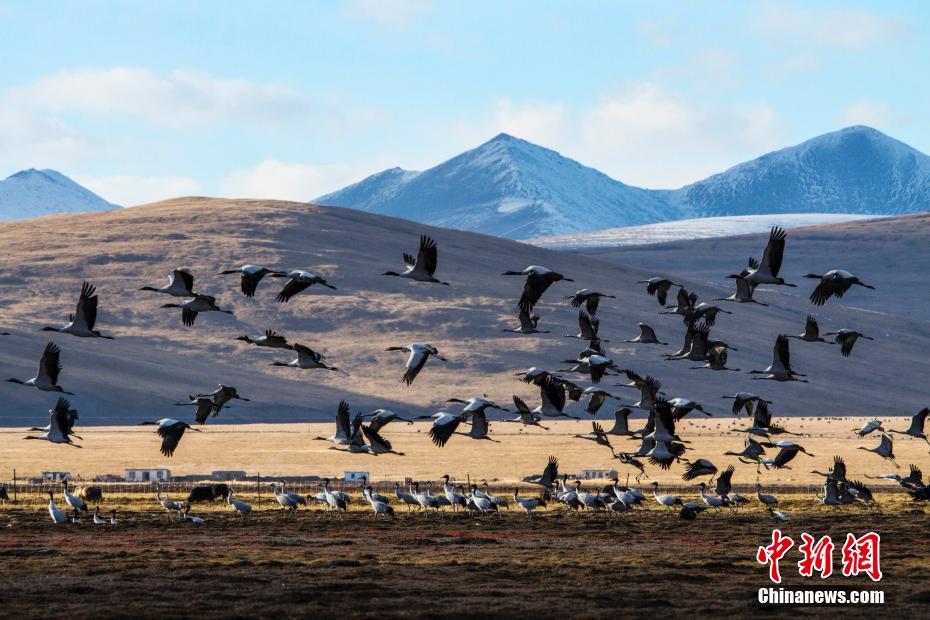 2019年首批黑頸鶴遷抵青海玉樹(shù)嘉塘草原