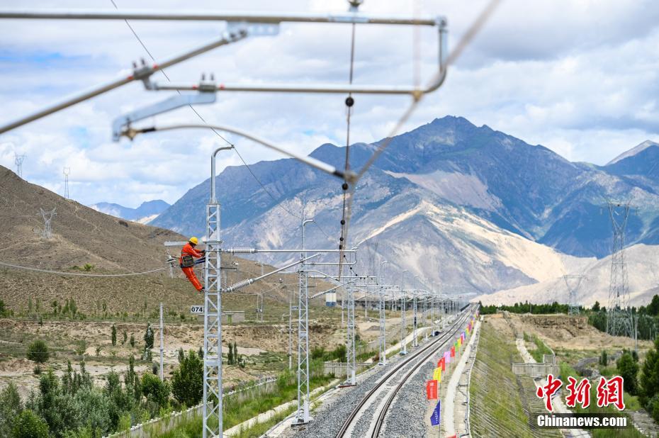 7月6日,中國中鐵電氣化局施工人員對拉林鐵路接觸網(wǎng)專業(yè)首件工程進(jìn)行復(fù)檢。當(dāng)日,川藏鐵路拉薩至林芝段(簡稱“拉林鐵路”)接觸網(wǎng)專業(yè)首件工程在西藏山南市扎囊至扎其區(qū)間成功建成,這為全線施工確定了規(guī)范和標(biāo)準(zhǔn),至此拉林鐵路也進(jìn)入了全線電氣化大規(guī)模施工階段。 拉林鐵路正線全長435.48公里,是西藏首條電氣化鐵路,正線共需架設(shè)接觸網(wǎng)540.63條公里,設(shè)計時速160公里。中新社記者 何蓬磊 攝
