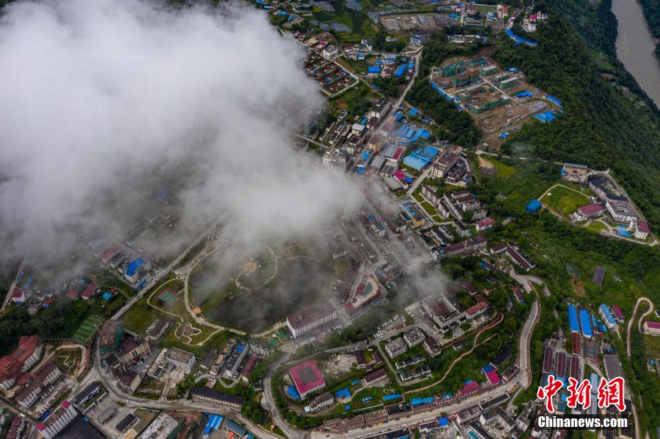 圖為云霧繚繞的墨脫縣城。何蓬磊 攝