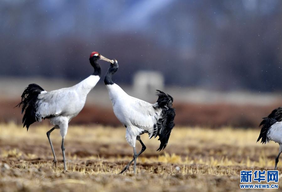 雪后拉薩林周,黑頸鶴越冬地。欒亞立攝