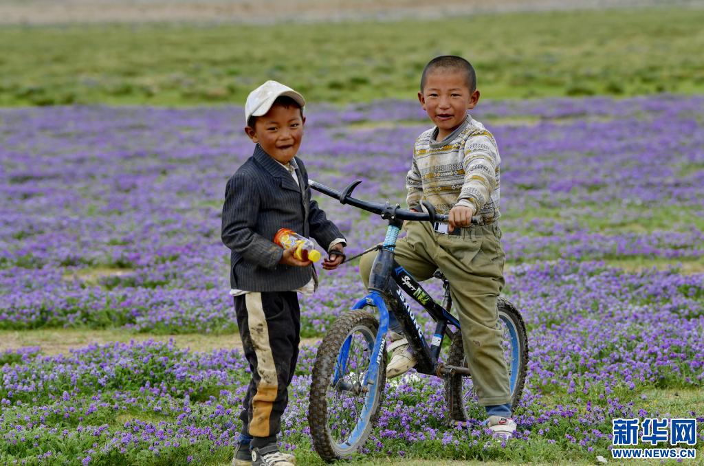 西藏當(dāng)雄縣格達(dá)鄉(xiāng)格達(dá)村的兒童在草場(chǎng)玩耍(6月19日攝)。新華社記者 張汝鋒 攝