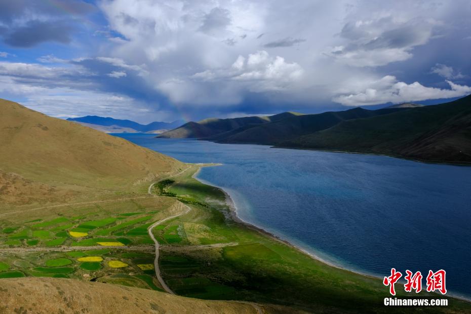 西藏自治區(qū)山南市羊卓雍錯(cuò)藏語(yǔ)意為“碧玉湖”,湖面海拔4441米,是西藏三大“圣湖”之一。目前正值夏季,羊卓雍錯(cuò)四周一片翠綠,其間點(diǎn)綴著盛開(kāi)的油菜花。近日,記者途徑羊卓雍錯(cuò)時(shí)恰遇彩虹出現(xiàn),湖面一片翠藍(lán),風(fēng)光絕美。江飛波 攝