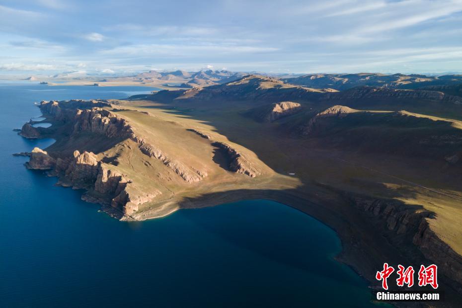 夕陽的余暉照耀在納木錯湖岸半島上。 江飛波 攝