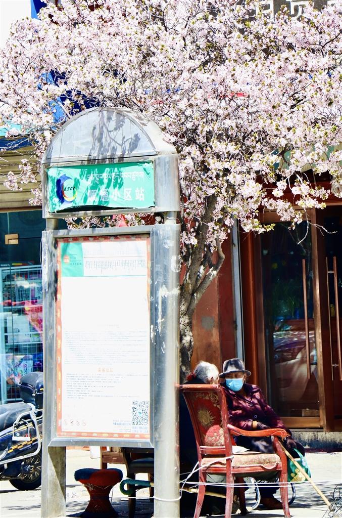 住在拉薩靠北邊的市民同樣能一飽眼福。娘熱北路兩側(cè)的榆葉梅已全部綻放,而緊鄰娘熱路的慈松塘中路和慈松塘東路更是一片春花爛漫的美好景象。慈松塘中路和北路的榆葉梅栽種較為密集,成團(tuán)成簇的淡粉色花朵擠在枝頭,樹下乘涼的老奶奶、樹邊??康墓卉嚕诨ǘ涞募映窒拢S手一拍便是故事感極強(qiáng)的畫面。