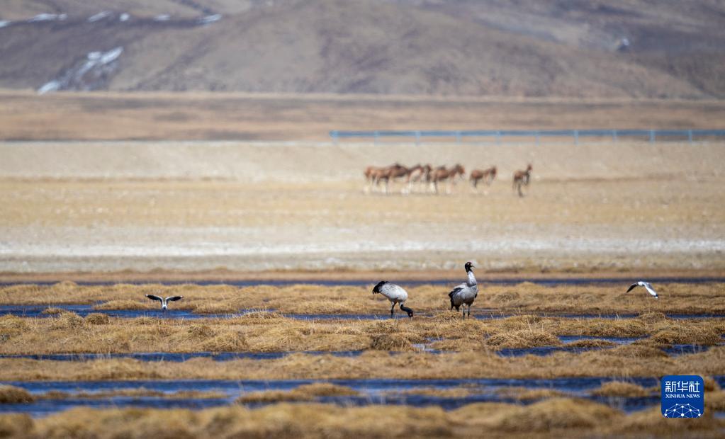 4月22日,黑頸鶴在西藏阿里地區(qū)普蘭縣境內(nèi)棲息。新華社發(fā)(劉曉東攝)