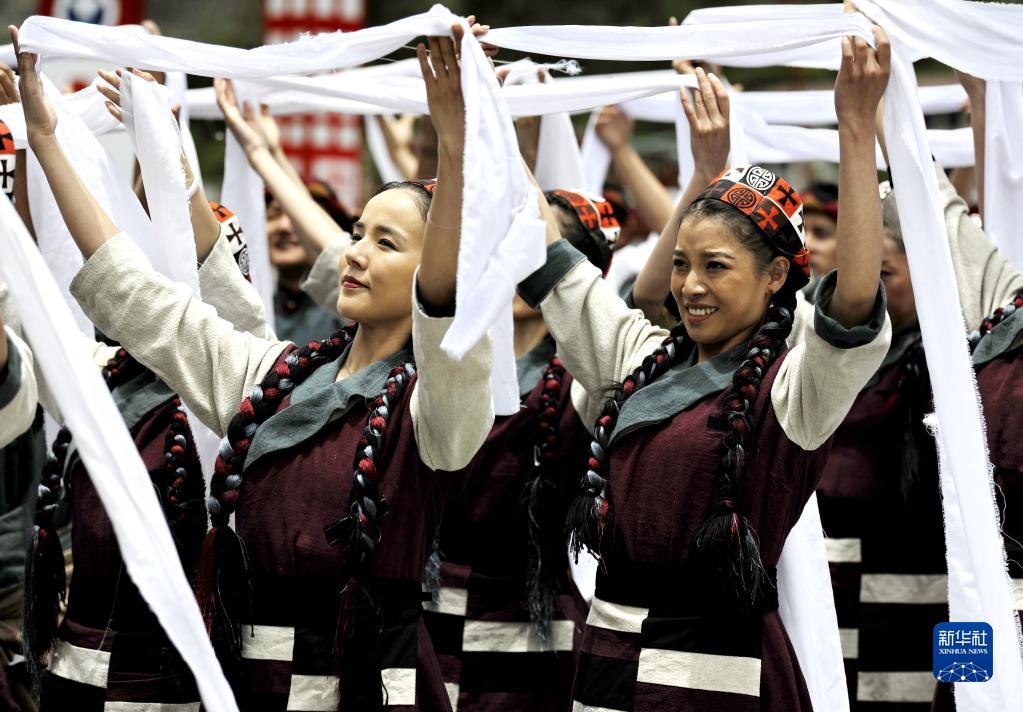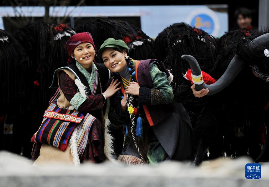 5月31日,演員在隆子縣玉麥鄉(xiāng)文化廣場表演歌舞劇《天邊格?;ā?。新華社記者 張汝鋒 攝
