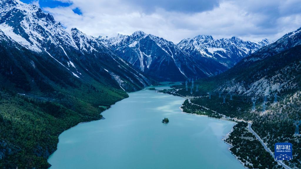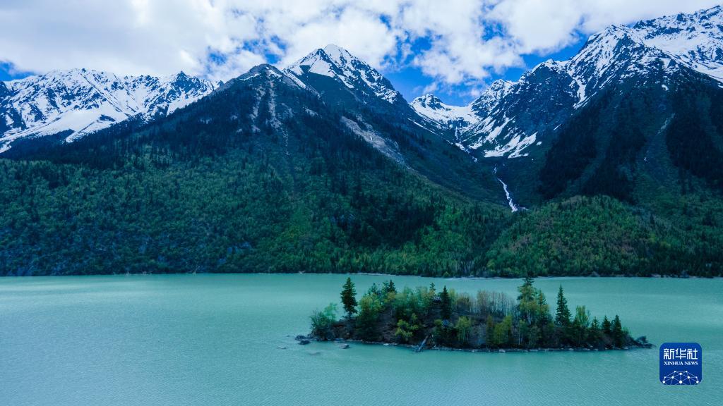 這是5月30日拍攝的然烏湖風(fēng)光(無(wú)人機(jī)照片)。新華社記者 陳尚才 攝