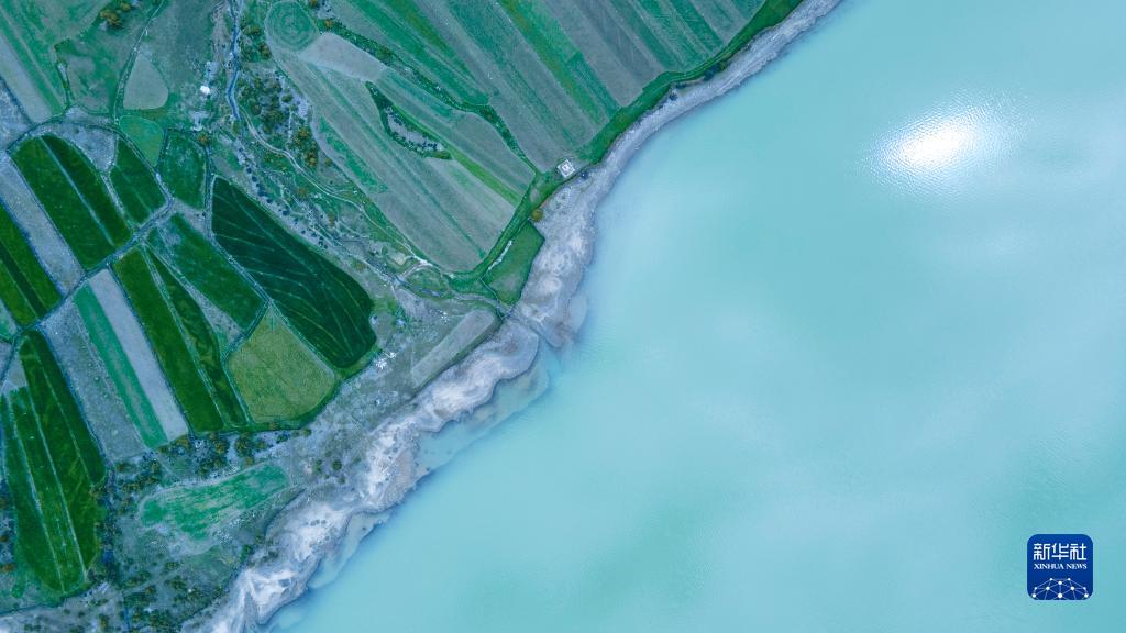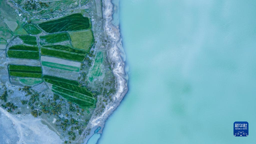 這是5月30日拍攝的然烏湖風(fēng)光(無(wú)人機(jī)照片)。新華社記者 周荻瀟 攝