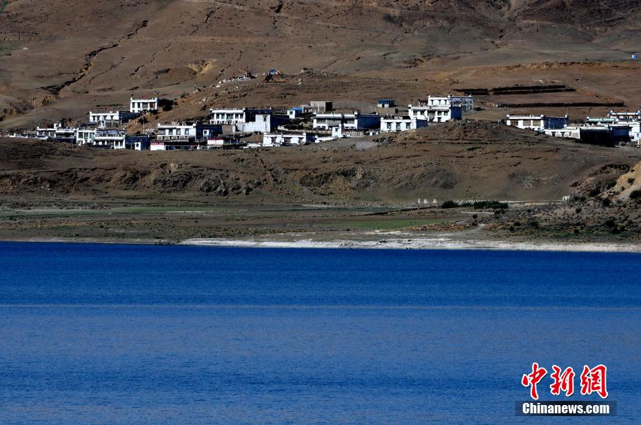 羊卓雍措,藏語(yǔ)意為“碧玉湖”,為西藏三大“圣湖”之一。羊卓雍措東西長(zhǎng)130公里,南北寬70公里,湖岸線總長(zhǎng)250公里。蜿蜒在群山中的羊卓雍措,無(wú)論從那個(gè)角度,都看不到它的全貌。近日,記者就避開(kāi)崗巴拉山口的常規(guī)線路,選擇沿著環(huán)湖線從山南貢嘎縣東拉鄉(xiāng)、浪卡子縣張達(dá)鄉(xiāng)等地觀賞羊卓雍措。圖為羊卓雍措。 李林 攝