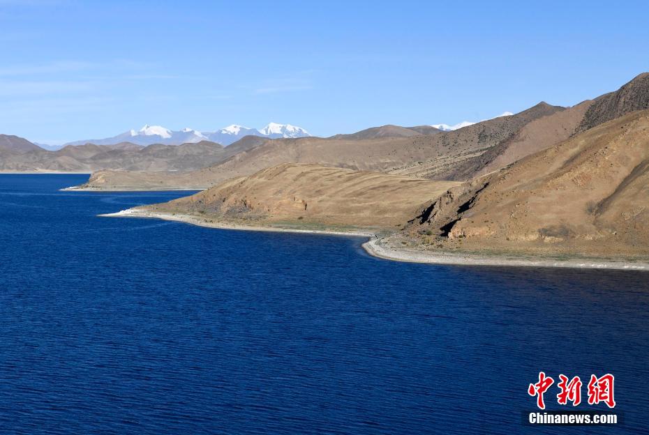 站在直拉山口俯瞰羊卓雍措,深邃藍(lán)的湖水似鑲嵌山間的藍(lán)寶石,與遠(yuǎn)處的庫(kù)拉崗日雪山形成一幅壯美圖卷。圖為羊卓雍措。 李林 攝