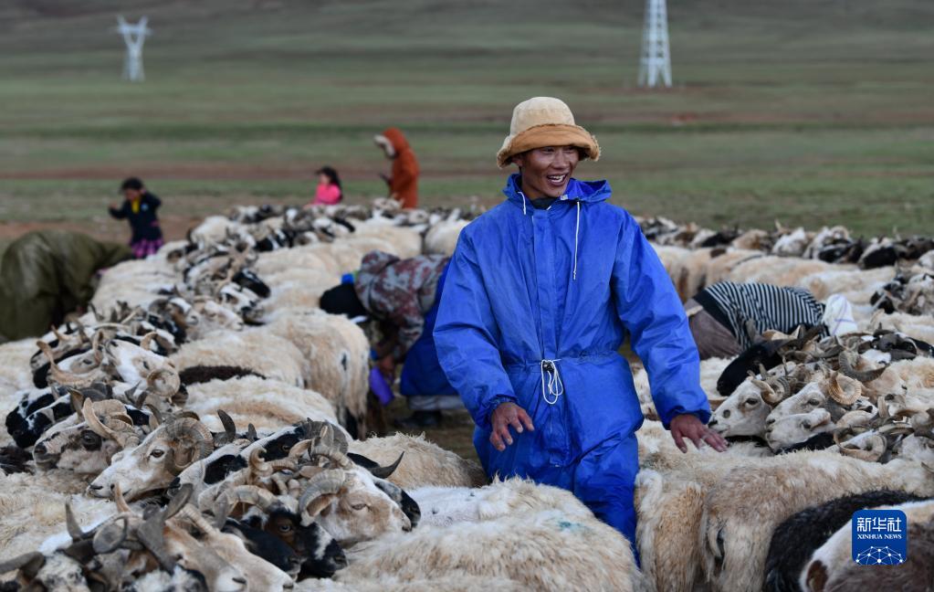 7月12日,在西藏那曲市雙湖縣多瑪鄉(xiāng),牧民在擠綿羊奶。新華社記者 周荻瀟 攝