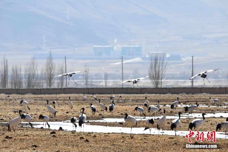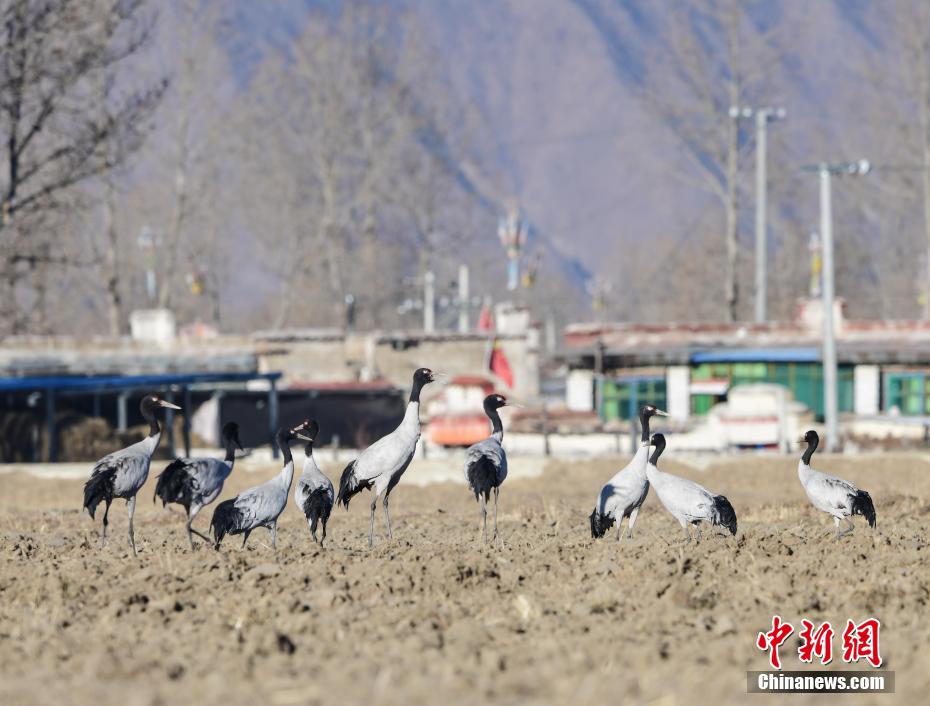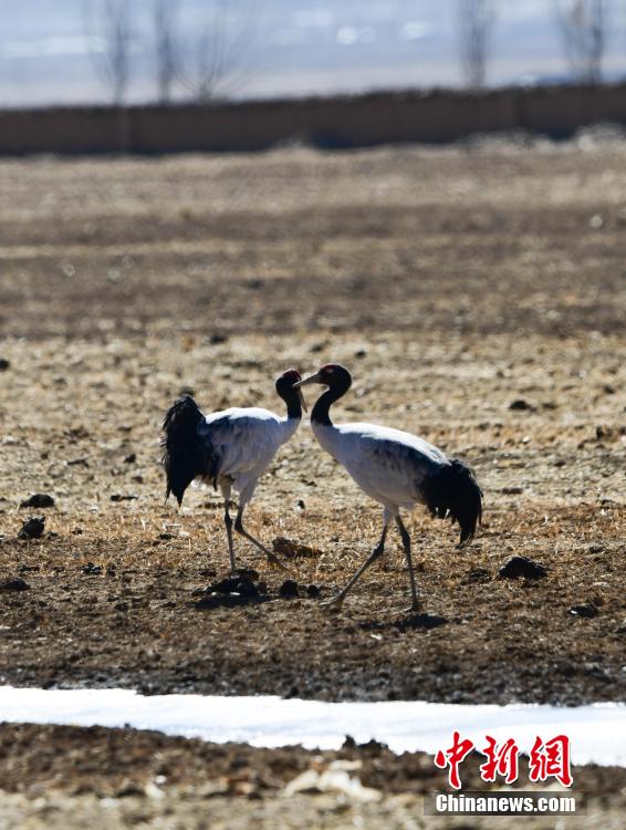 每年的10月底,成群的黑頸鶴飛到西藏拉薩市林周縣越冬,在拉薩市林周縣周邊的湖泊濕地度過5個(gè)月的“閑云野鶴”生活,次年三四月份再飛向藏北草原繁殖。黑頸鶴是世界上唯一一種高原鶴類。具有足長、喙長、頸長的典型涉禽類特征,適合在沼澤地里行走。黑頸鶴的頸、尾為黑色,體羽為灰白色。黑頸鶴是國家一級(jí)保護(hù)動(dòng)物。目前,每年到林周縣越冬的黑頸鶴已達(dá)2000只左右。圖為黑頸鶴在林周境內(nèi)的農(nóng)田里覓食、嬉戲。 貢嘎來松 攝