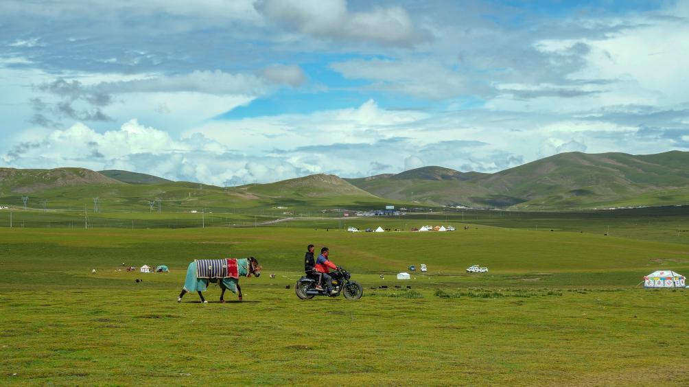 打加錯(cuò)湖畔的羊群、牛群(8月30日攝)。新華社記者 劉文博 攝