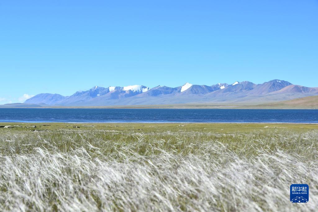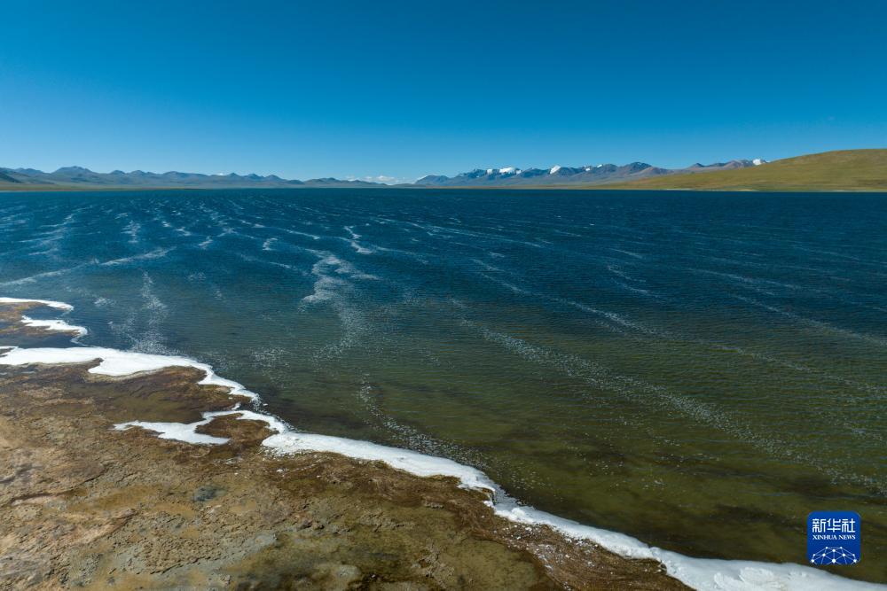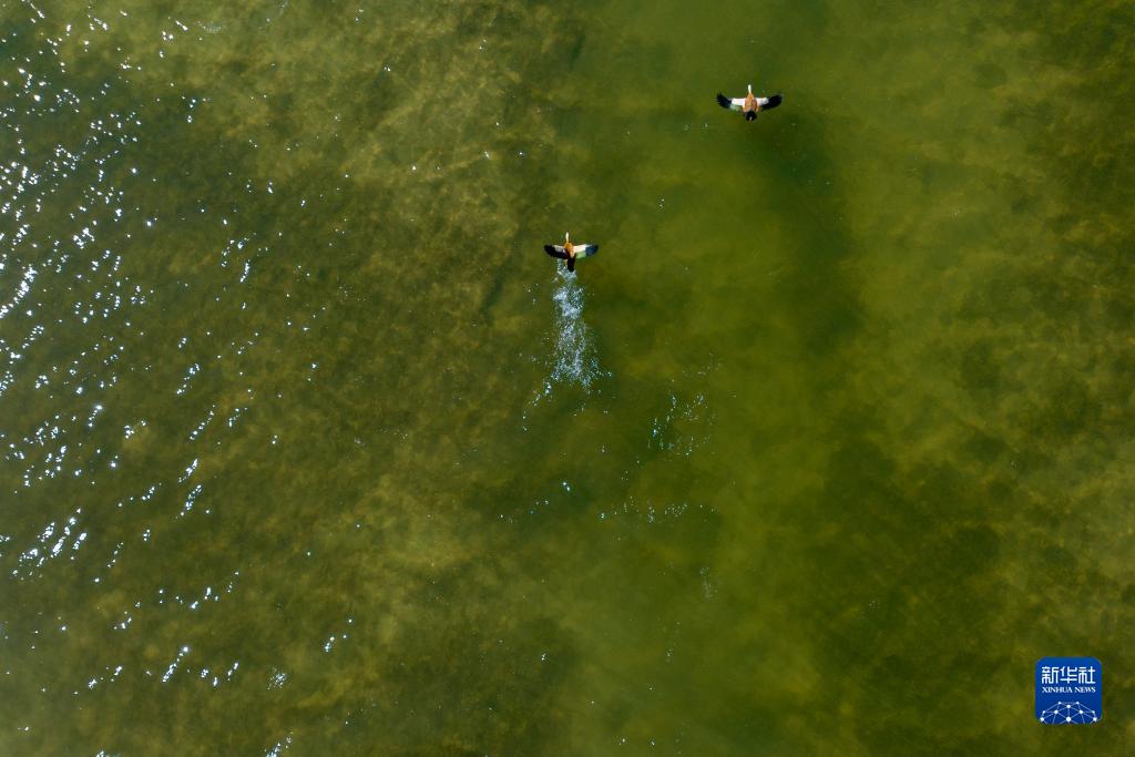 飛鳥從打加錯(cuò)湖面掠過(guò)(無(wú)人機(jī)照片,8月30日攝)。新華社發(fā)(旦增努布 攝)