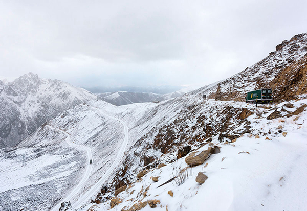 1999年, 其美多吉從德格縣郵電局調(diào)到甘孜郵車站后,一直從事康定-德格長途郵運(yùn)駕駛工作。這條郵路以甘孜州州府康定為起點,沿途翻越折多山、橡皮山、松林口、羅鍋梁子和海拔6168米的雀兒山后,抵達(dá)川藏郵路四川段終點站——德格縣,全程往返1208公里。因地貌復(fù)雜、氣候多變、平均海拔在3500米雪線以上,被稱為“雪線郵路”。圖片來源:新華網(wǎng)