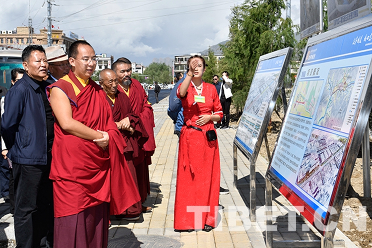 3)在西藏自治區(qū)高法小區(qū)前,十一世班禪參觀了城市生態(tài)水系修復(fù)試點(diǎn)項(xiàng)目施工現(xiàn)場。