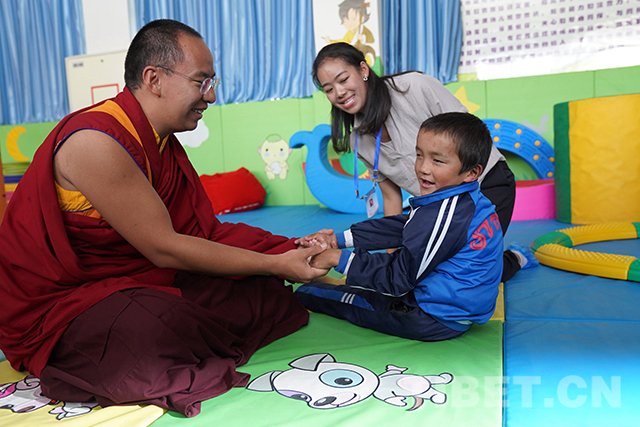 “喜歡這份工作嗎?”“愿意做這份工作嗎?”在康復(fù)區(qū)參觀調(diào)研時,十一世班禪仔細詢問老師們的工作情況并對他們說:“你們在這里為這些殘障的孩子奉獻,很了不起,向你們致敬?!?/p>